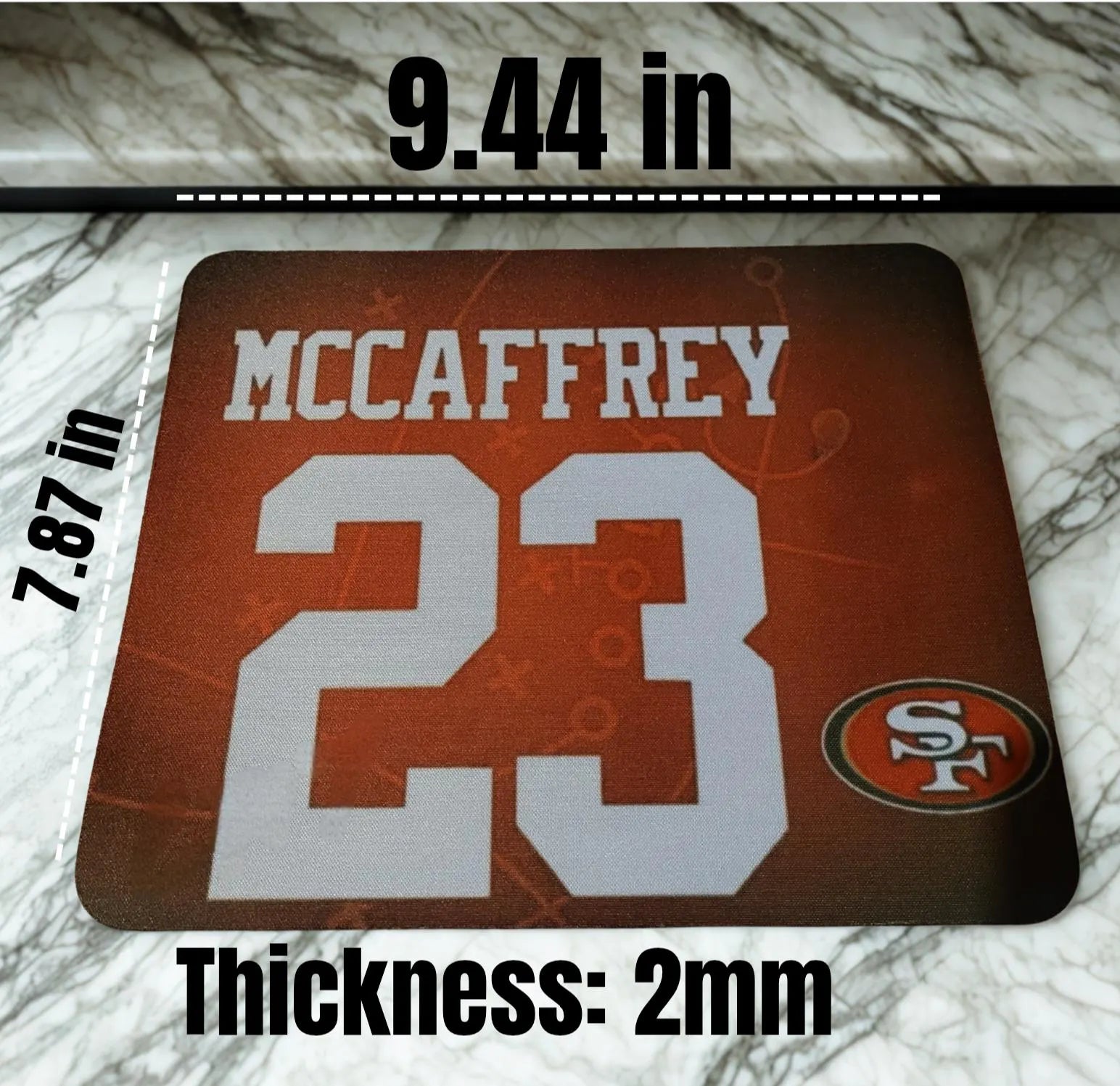 Combine your love for the San Francisco 49ers and technology with this Christine McCaffrey Mouse Pad. This mousepad is thin and lightweight with a non-slip base for mouse accuracy.